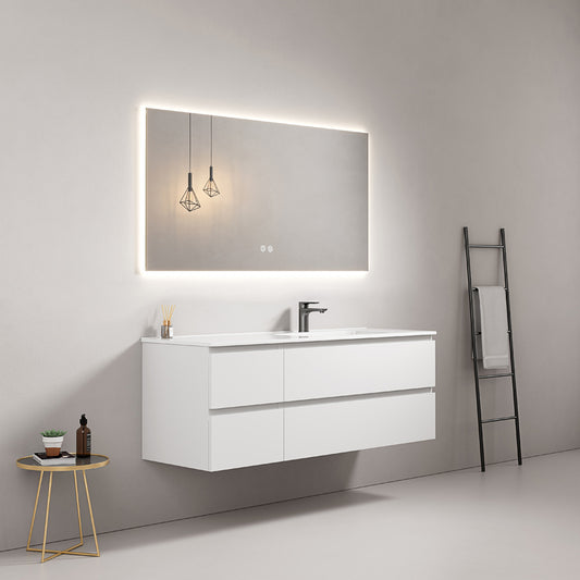 Mobile bagno sospeso 140 cm Bianco Lavabo a Sinistra in Resina Specchio Quadro Retroilluminato - Fiji Paint