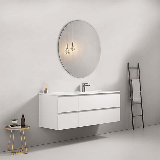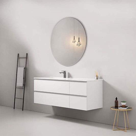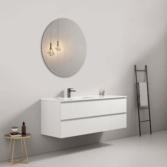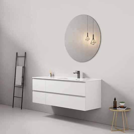 Mobile bagno sospeso 140 cm Bianco Lavabo a Sinistra in Resina Specchio Tondo - Fiji Wood