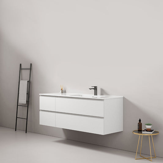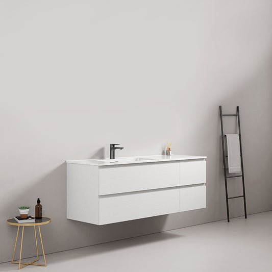 Mobile bagno sospeso 140 cm Bianco Lavabo a Sinistra in Resina Senza Specchio - Fiji Wood