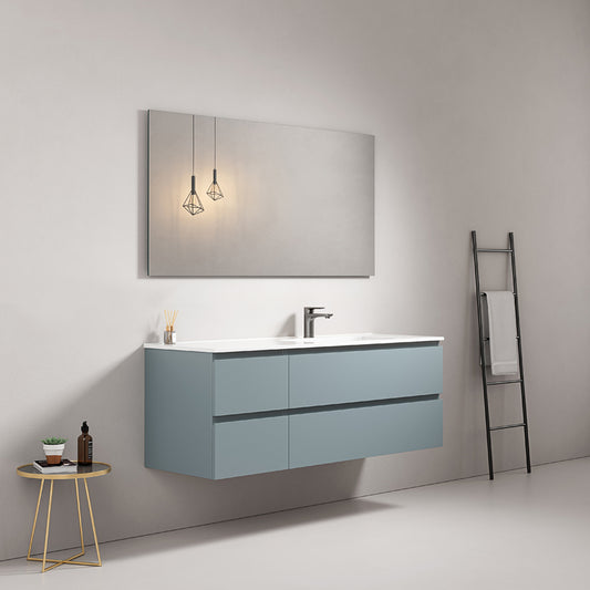 Mobile bagno sospeso 140 cm Blu Avio Lavabo a Destra in Resina Specchio Quadro - Fiji Paint Plus