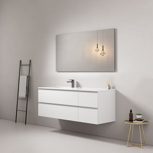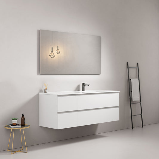 Mobile bagno sospeso 140 cm Bianco Lavabo a Sinistra in Resina Specchio Quadro - Fiji Wood