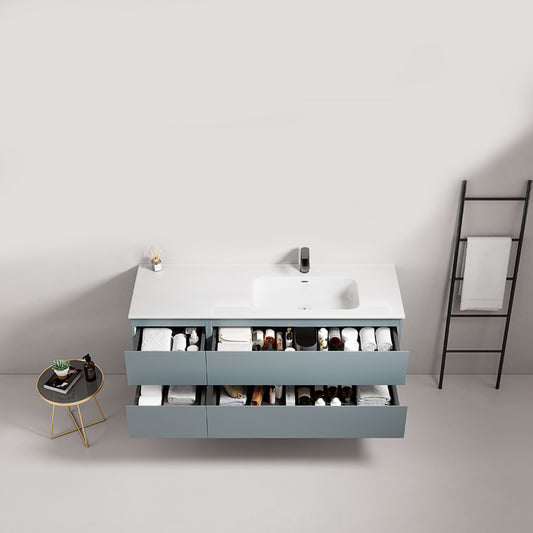 Mobile bagno sospeso 140 cm Blu Avio Lavabo a Destra in Resina Senza Specchio - Fiji Paint Plus