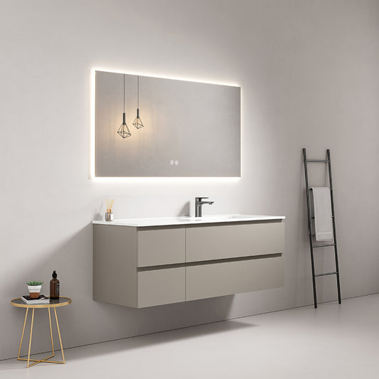Mobile bagno sospeso 140 cm Grigio Cenere Lavabo a Destra in Resina Specchio Quadro Retroilluminato - Fiji Paint