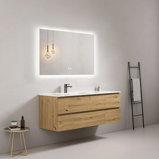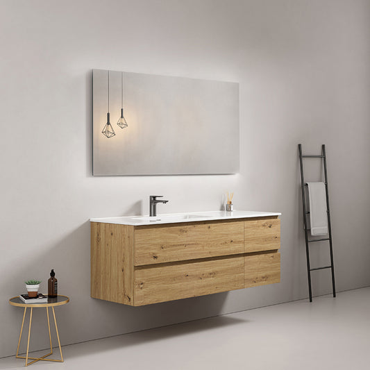 Mobile bagno sospeso 140 cm Bruno Medio Lavabo a Sinistra in Resina Specchio Quadro Retroilluminato - Fiji Wood