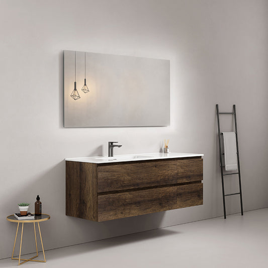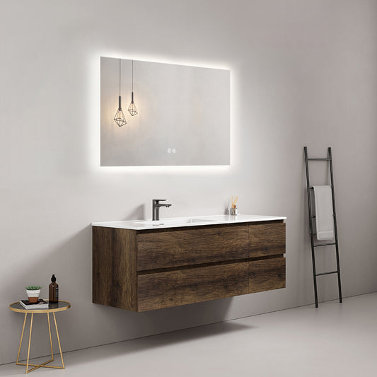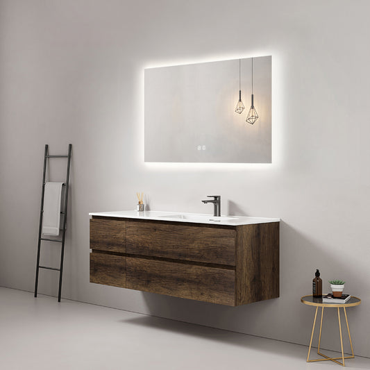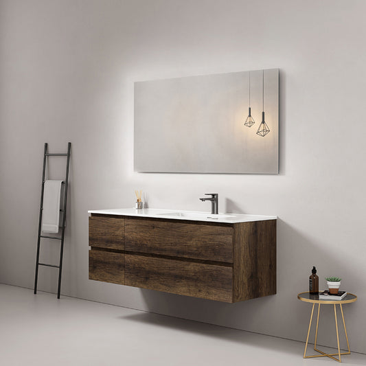 Mobile bagno sospeso 140 cm Bruno Scuro Lavabo a Sinistra in Resina Specchio Quadro Retroilluminato - Fiji Wood
