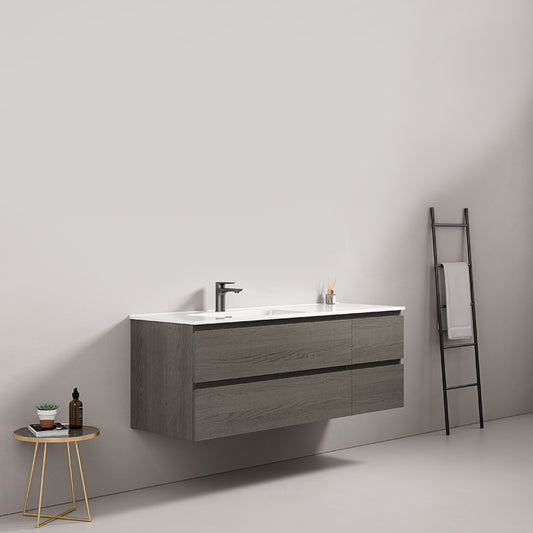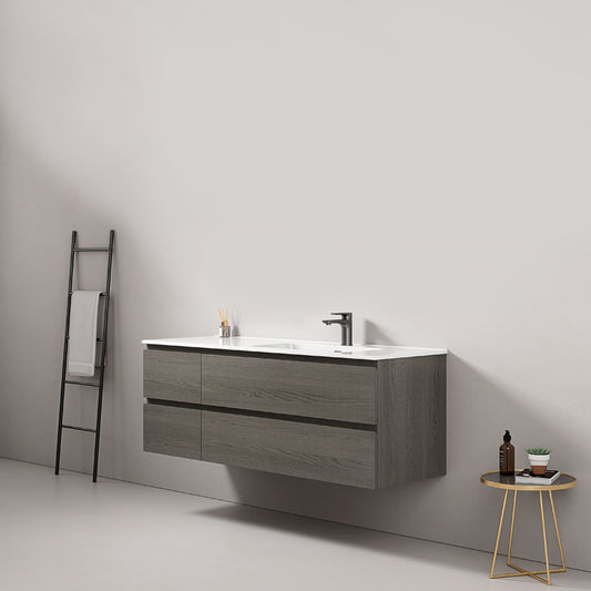 Mobile bagno sospeso 140 cm Grey Lavabo a Destra in Resina Senza Specchio - Fiji Wood
