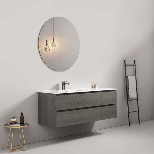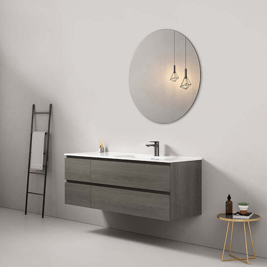 Mobile bagno sospeso 140 cm Grey Lavabo a Sinistra in Resina Specchio Tondo - Fiji Wood