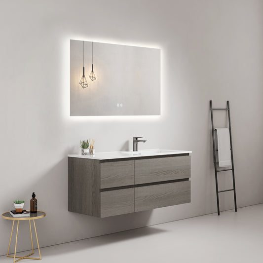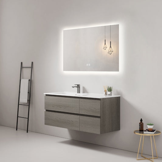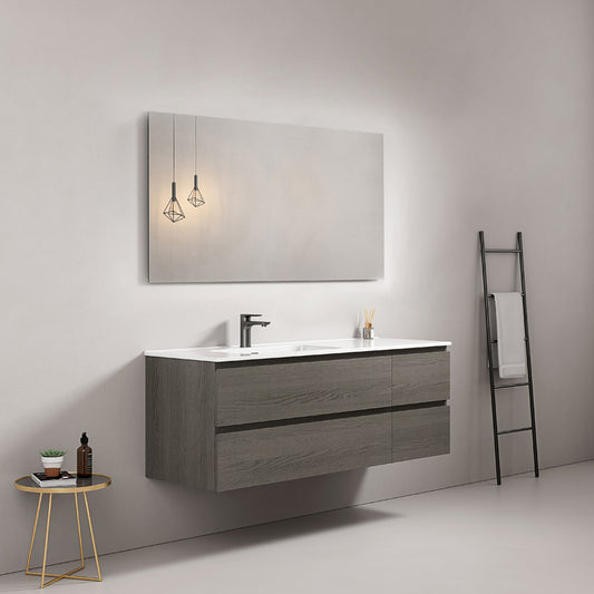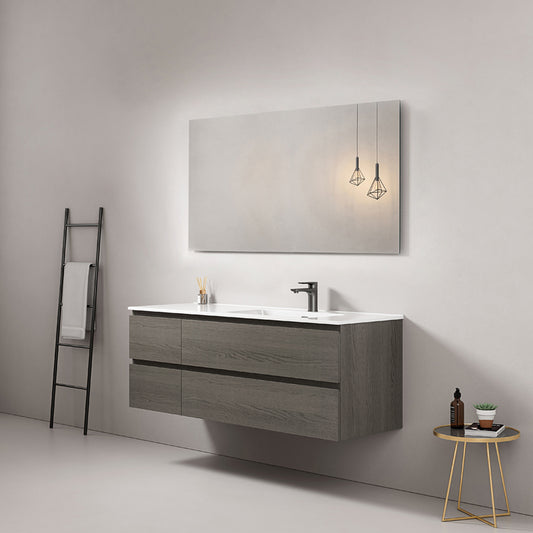 Mobile bagno sospeso 140 cm Grey Lavabo a Sinistra in Resina Specchio Quadro Retroilluminato - Fiji Wood