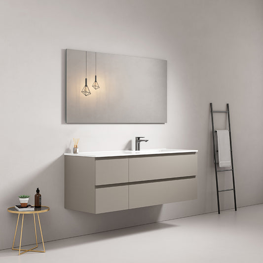 Mobile bagno sospeso 140 cm Grigio Cenere Lavabo a Destra in Resina Specchio Quadro - Fiji Paint Plus