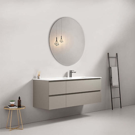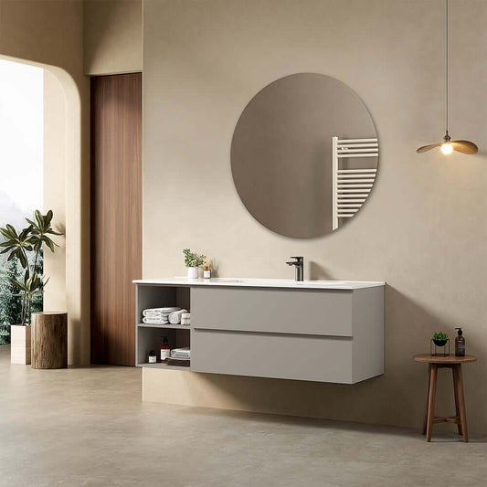 Mobile bagno sospeso 140 cm Grigio Cenere Lavabo a Destra in Resina Specchio Tondo - Fiji Paint Plus