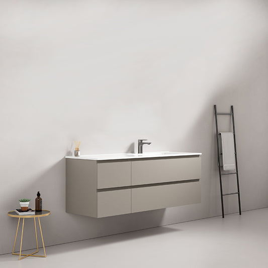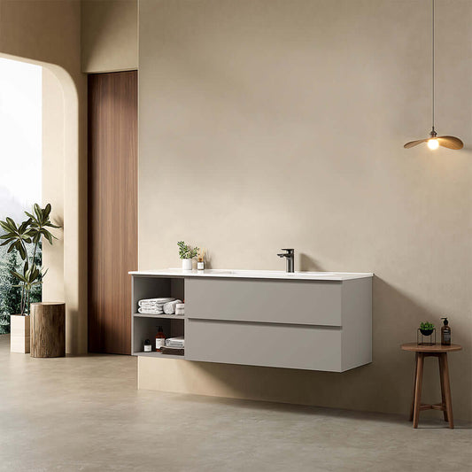 Mobile bagno sospeso 140 cm Grigio Cenere Lavabo a Destra in Resina Senza Specchio - Fiji Paint Plus