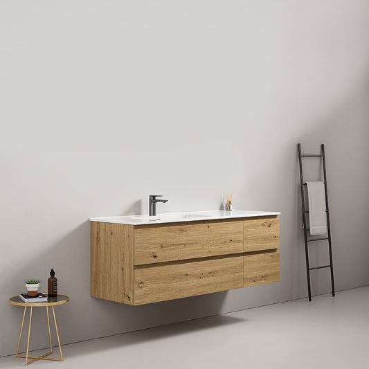 Mobile bagno sospeso 140 cm Bruno Medio Lavabo a Sinistra in Resina Senza Specchio - Fiji Wood