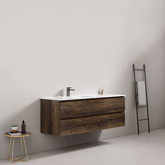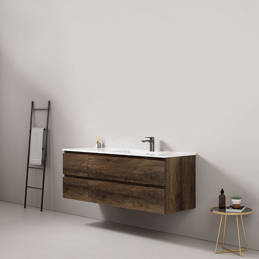 Mobile bagno sospeso 140 cm Bruno Scuro Lavabo a Sinistra in Resina Senza Specchio - Fiji Wood