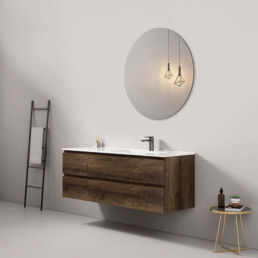 Mobile bagno sospeso 140 cm Bruno Scuro Lavabo a Sinistra in Resina Specchio Tondo - Fiji Wood