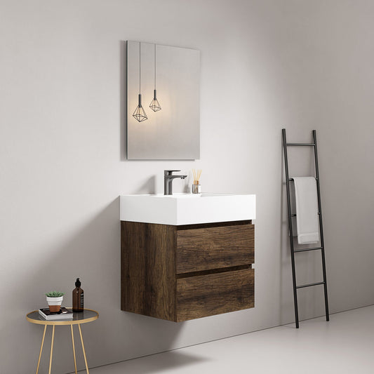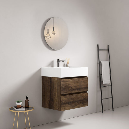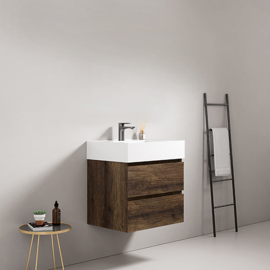 Mobile bagno sospeso 60 cm Bruno Scuro Lavabo in Resina Senza Specchio - Fiji Wood