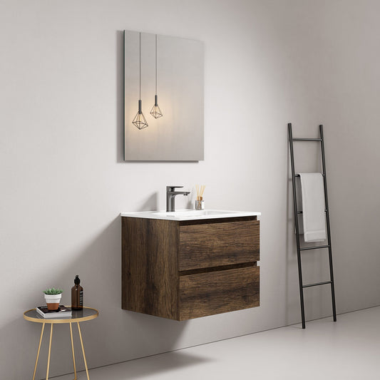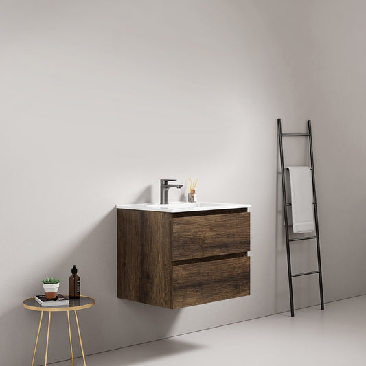 Mobile bagno sospeso 60 cm Bruno Scuro Lavabo in Ceramica Senza Specchio - Fiji Wood