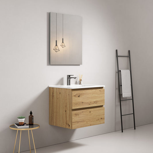 Mobile bagno sospeso 60 cm Bruno Medio Lavabo in Ceramica Senza Specchio - Fiji Wood