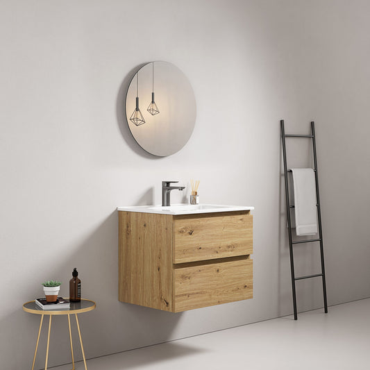 Mobile bagno sospeso 60 cm Bruno Medio Lavabo in Ceramica Specchio Tondo - Fiji Wood