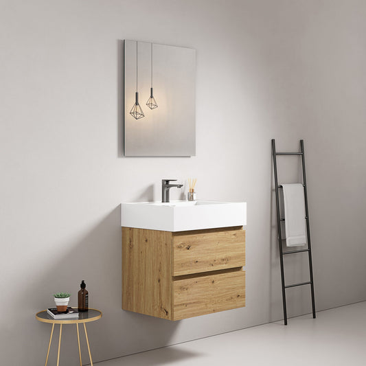 Mobile bagno sospeso 60 cm Bruno Medio Lavabo in Resina Senza Specchio - Fiji Wood