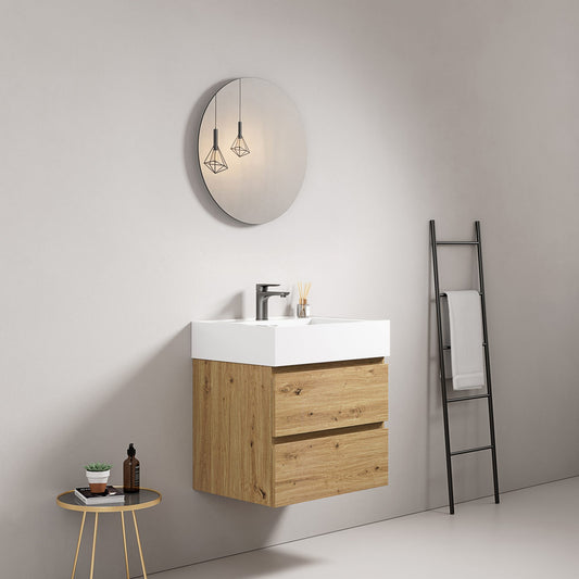Mobile bagno sospeso 60 cm Bruno Medio Lavabo in Resina Specchio Tondo - Fiji Wood