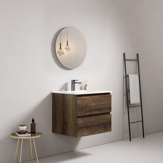 Mobile bagno sospeso 60 cm Bruno Scuro Lavabo in Ceramica Specchio Tondo - Fiji Wood