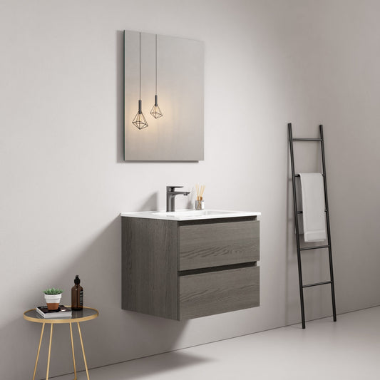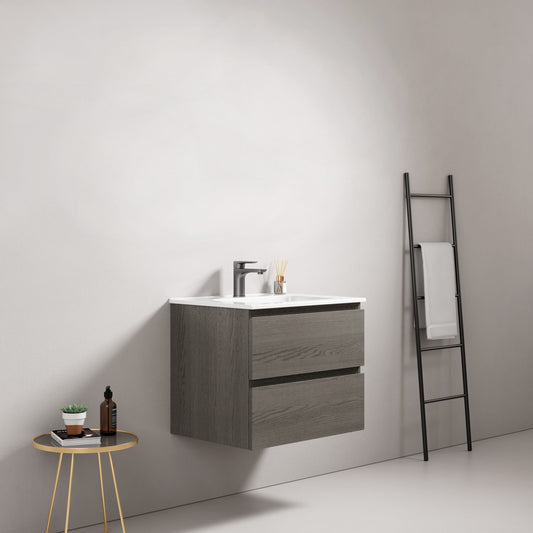 Mobile bagno sospeso 60 cm Grey Lavabo in Ceramica Senza Specchio - Fiji Wood