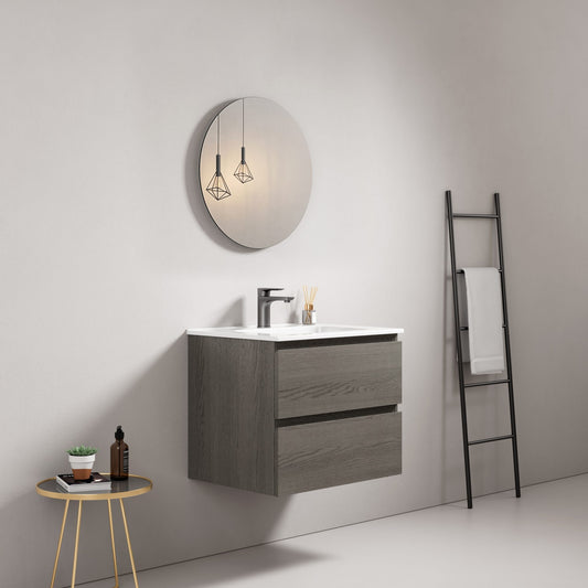 Mobile bagno sospeso 60 cm Grey Lavabo in Ceramica Specchio Tondo - Fiji Wood