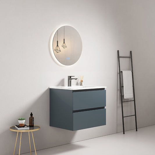 Mobile bagno sospeso 60 cm Blu Mare Lavabo in Ceramica Specchio Tondo Retroilluminato - Fiji Paint