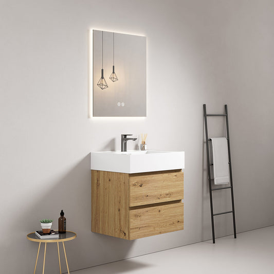Mobile bagno sospeso 60 cm Bruno Medio Lavabo in Resina Specchio Quadro Retroilluminato - Fiji Wood