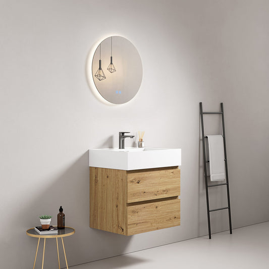 Mobile bagno sospeso 60 cm Bruno Medio Lavabo in Resina Specchio Tondo Retroilluminato - Fiji Wood