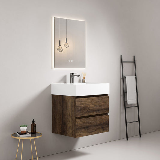 Mobile bagno sospeso 60 cm Bruno Scuro Lavabo in Resina Specchio Quadro Retroilluminato - Fiji Wood