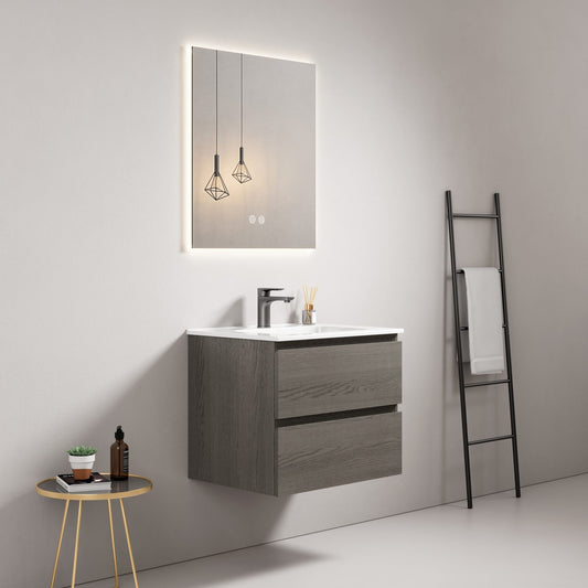 Mobile bagno sospeso 60 cm Grey Lavabo in Ceramica Specchio Quadro Retroilluminato - Fiji Wood