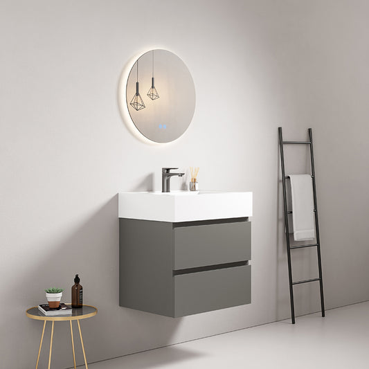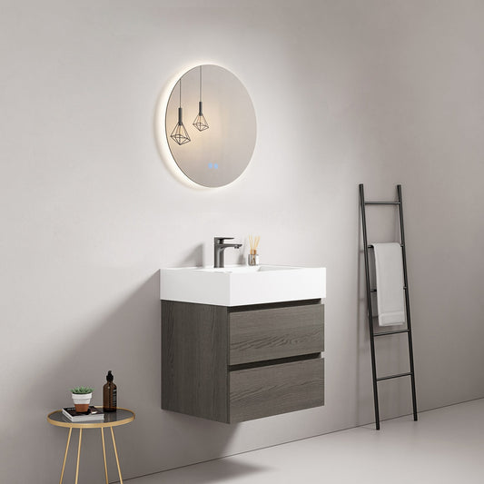 Mobile bagno sospeso 60 cm Grey Lavabo in Resina Specchio Tondo Retroilluminato - Fiji Wood