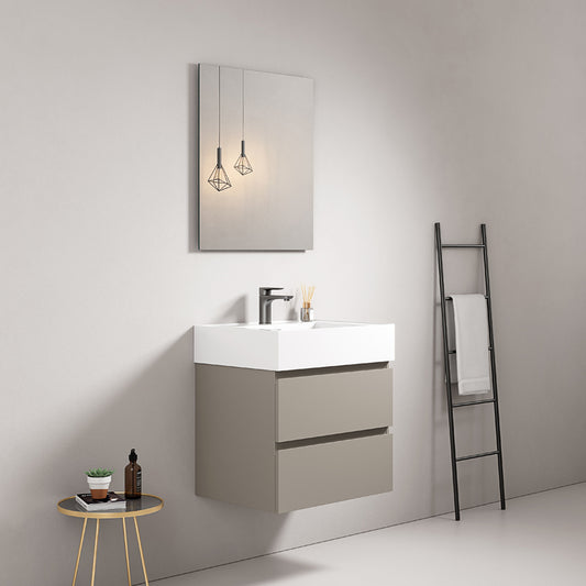 Mobile bagno sospeso 60 cm Grigio Cenere Lavabo in Resina Specchio Quadro - Fiji Paint