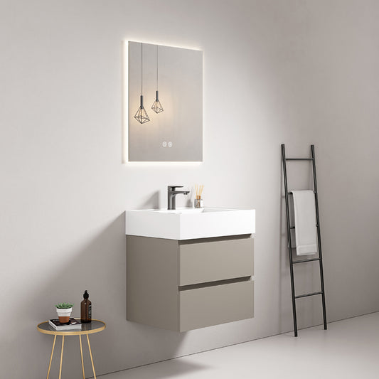 Mobile bagno sospeso 60 cm Grigio Cenere Lavabo in Resina Specchio Quadro Retroilluminato - Fiji Paint