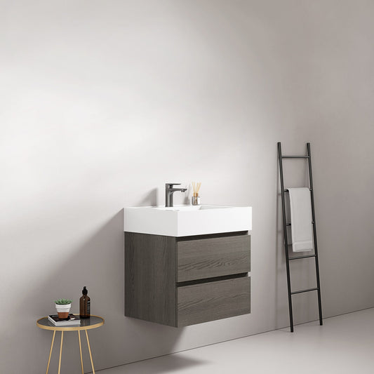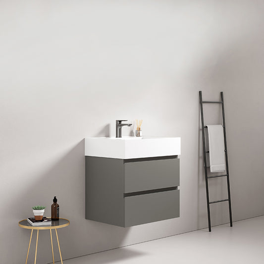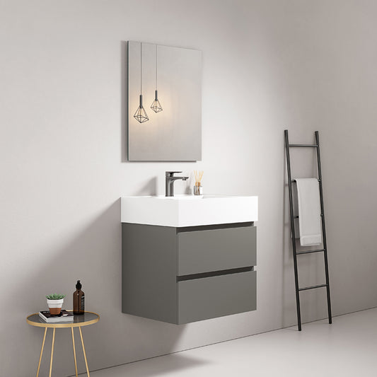Mobile bagno sospeso 60 cm Grey Lavabo in Resina Senza Specchio - Fiji Wood