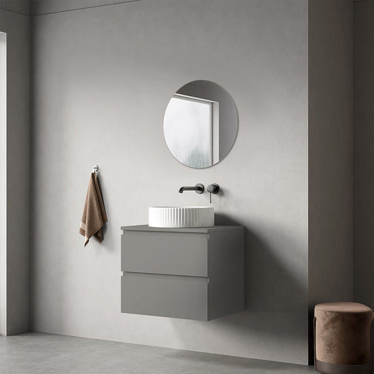 Mobile bagno sospeso 60 cm Grigio Cenere per Lavabo d'appoggio Specchio Tondo - Fiji Paint Top