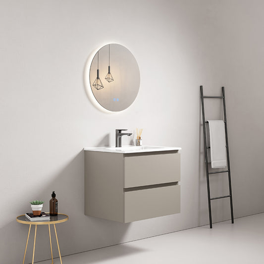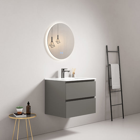 Mobile bagno sospeso 60 cm Grigio Cenere Lavabo in Ceramica Specchio Tondo Retroilluminato - Fiji Paint