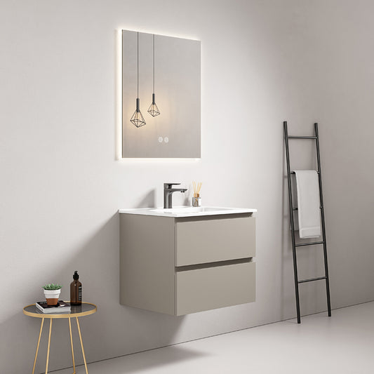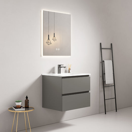 Mobile bagno sospeso 60 cm Grigio Cenere Lavabo in Ceramica Specchio Quadro Retroilluminato - Fiji Paint