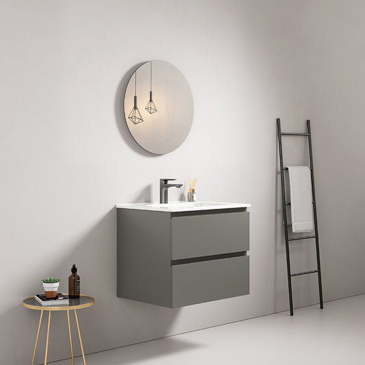 Mobile bagno sospeso 60 cm Grigio Cenere Lavabo in Ceramica Specchio Tondo - Fiji Paint