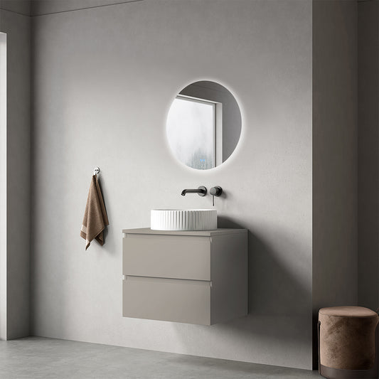 Mobile bagno sospeso 60 cm Grigio Cenere per Lavabo d'appoggio Specchio Tondo Retroilluminato - Fiji Paint Top