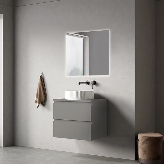 Mobile bagno sospeso 60 cm Grigio Cenere per Lavabo d'appoggio Specchio Quadro Retroilluminato - Fiji Paint Top