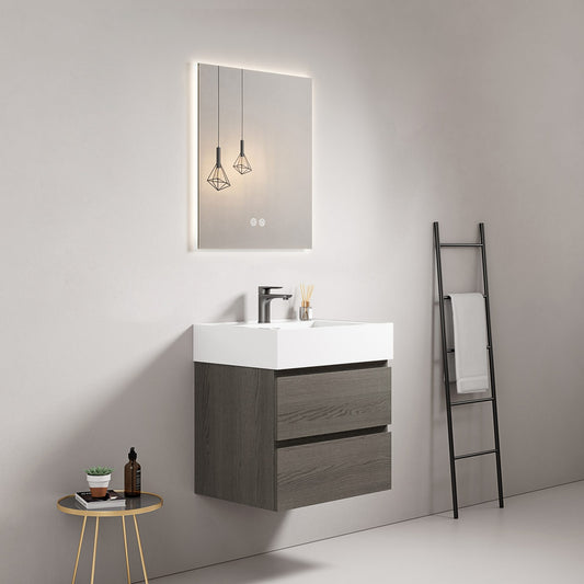 Mobile bagno sospeso 60 cm Grey Lavabo in Resina Specchio Quadro Retroilluminato - Fiji Wood