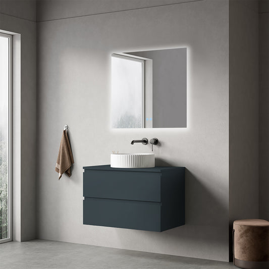 Mobile bagno sospeso 80 cm Bianco Opaco per Lavabo d'appoggio Specchio Quadro Retroilluminato - Fiji Paint Top