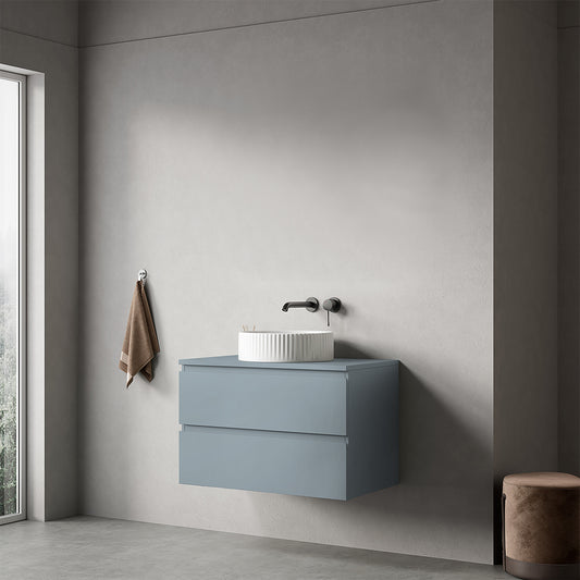 Mobile bagno sospeso 80 cm Blu Avio per Lavabo d'appoggio Senza Specchio - Fiji Paint Top