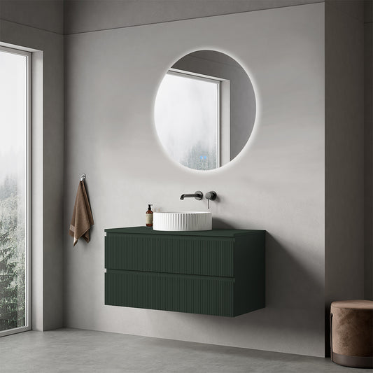 Mobile bagno sospeso cannettato 100 cm Verde Comodoro per Lavabo d'appoggio Specchio Tondo Retroilluminato - Fiji Paint Top Canneté