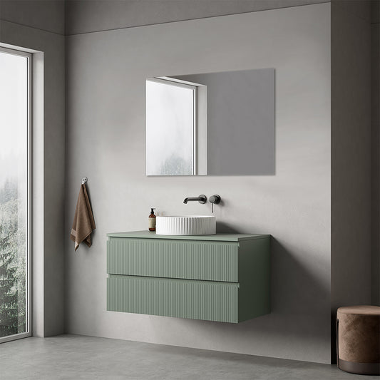 Mobile bagno sospeso cannettato 100 cm Verde Salvia per Lavabo d'appoggio Specchio Quadro - Fiji Paint Top Canneté