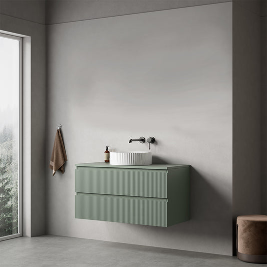 Mobile bagno sospeso cannettato 100 cm Verde Salvia per Lavabo d'appoggio Senza Specchio - Fiji Paint Top Canneté