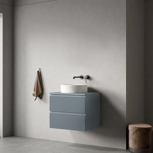 Mobile bagno sospeso cannettato 60 cm Grigio Cenere per Lavabo d'appoggio Senza Specchio - Fiji Paint Top Canneté