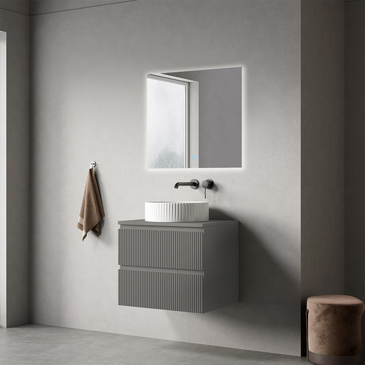 Mobile bagno sospeso cannettato 60 cm Grigio Cenere per Lavabo d'appoggio Specchio Quadro Retroilluminato - Fiji Paint Top Canneté